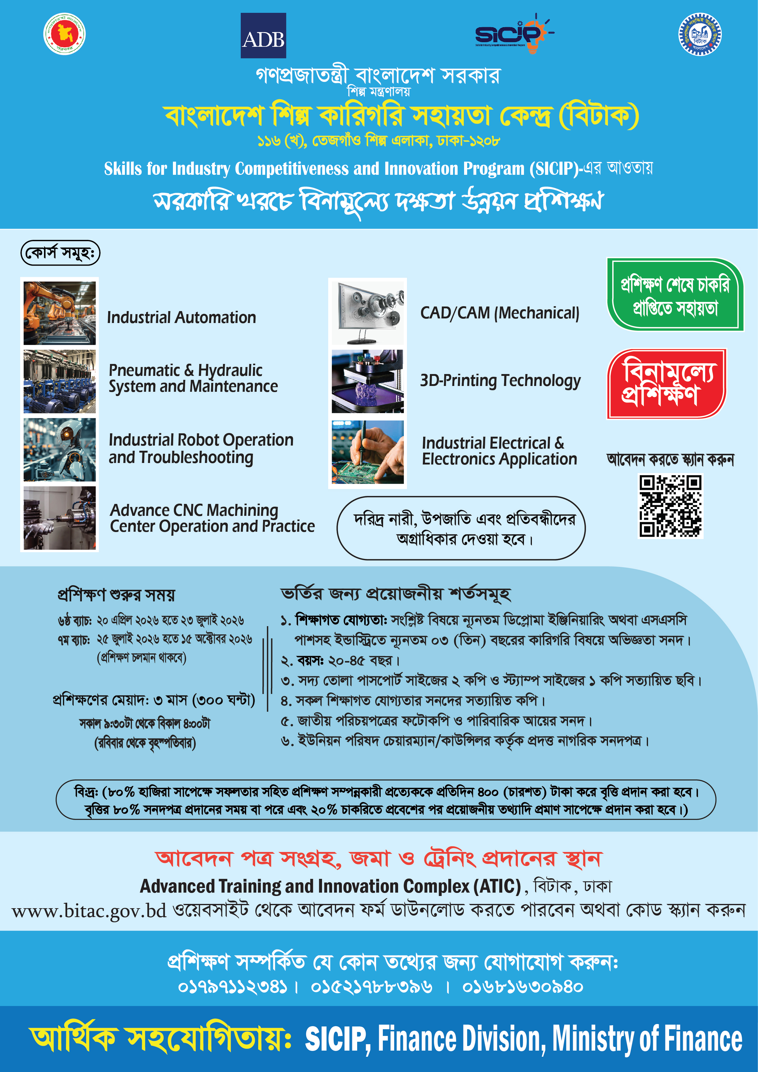 SICIP প্রকল্পের আওতায় উচ্চতর কারিগরি প্রশিক্ষণ কোর্সে ভর্তি চলছে।